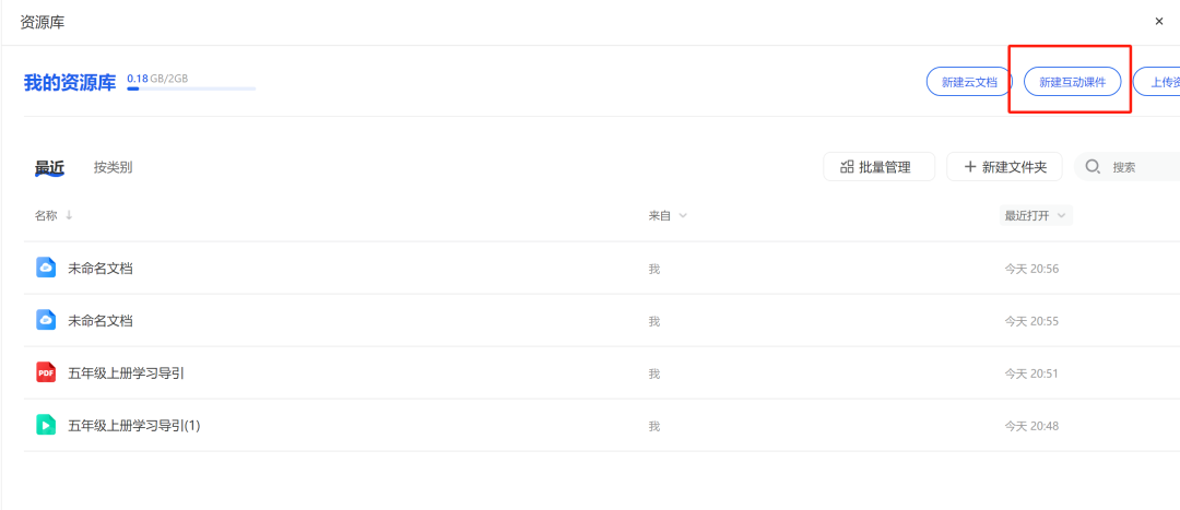 下载并登录后,我们在工作台,这里有个资源库。或者当我们有现成的资源的时候,可以直接点击下方“教学版块”的“我的资源库”直接点击内容也可以进入。