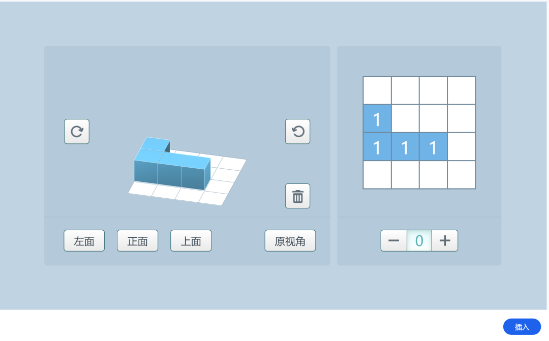这些工具用起来也非常简单,我们以“方块塔”这个工具为例。这个工具是通过方块的不同堆叠,来演示相应的三视图的。