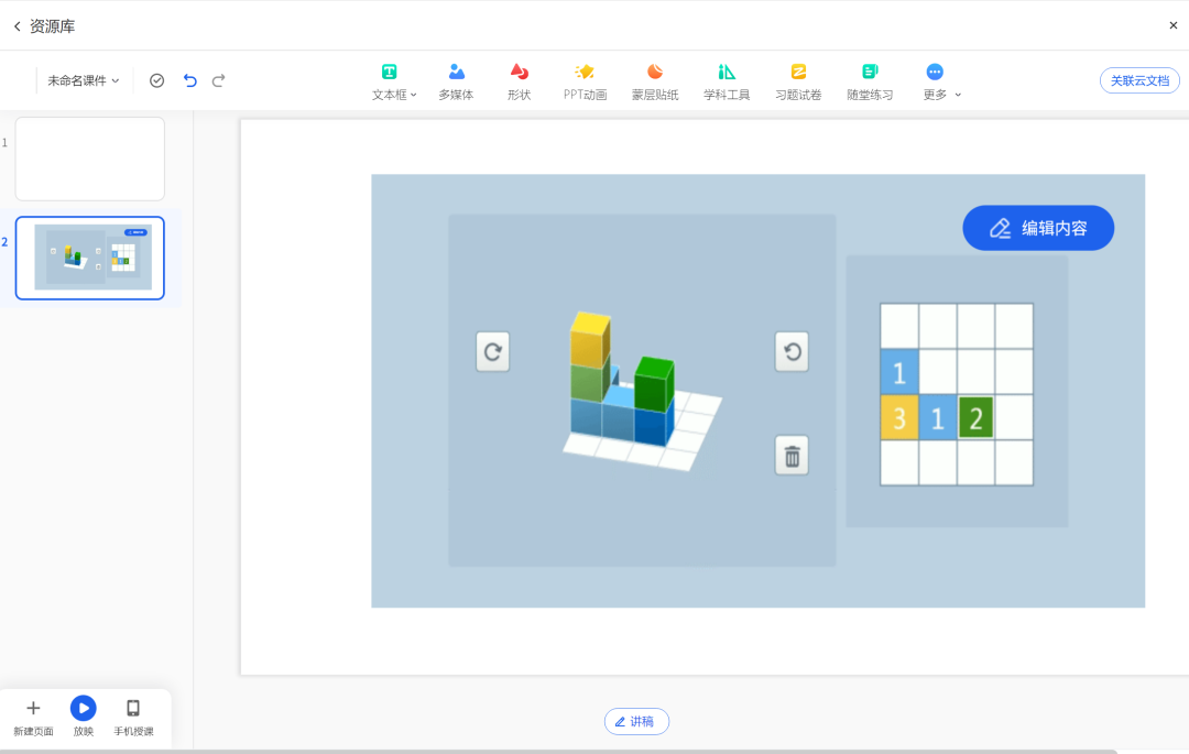 这些工具用起来也非常简单,我们以“方块塔”这个工具为例。这个工具是通过方块的不同堆叠,来演示相应的三视图的。